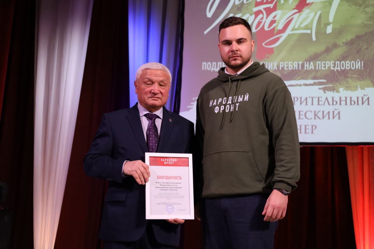 19 декабря в Доме культуры города Новомосковска состоялось торжественное подведение итогов 2025 года с вручением наград ветеранам, волонтерским и общественным организациям. Фонд Дмитрия Донского, представляемый президентом Анатолием Цой, был удостоен благодарности от регионального отделения Общероссийского народного фронта (ОНФ) в Тульской области за значительный вклад в поддержку военнослужащих и мирных жителей. Благодарность вручил рук