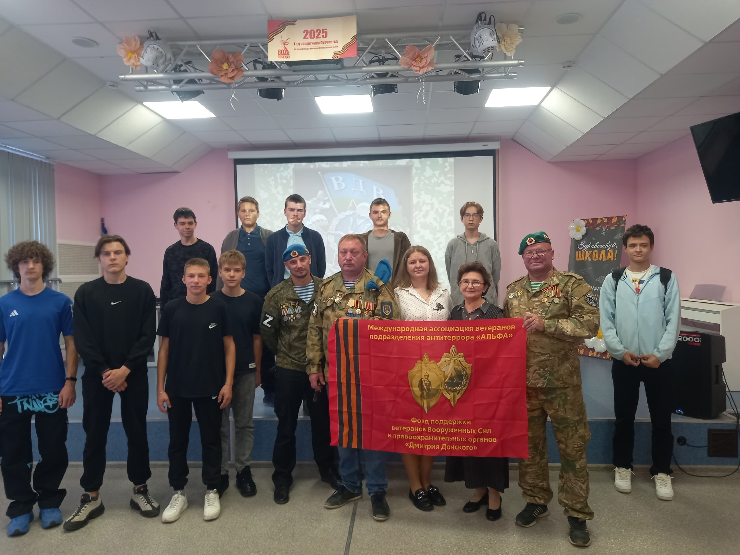 Фонд Дмитрия Донского завершил насыщенную неделю заключительным мероприятием. В минувшую пятницу , 19 сентября в школе №3 микрорайона Сокольники города Новомосковска состоялся урок мужества, посвященный 95-летию Воздушно-десантных войск. Школа, обновленная после капитального ремонта, сияющая новыми красками и современным оборудованием, приняла гостей с распахнутыми объятиями.