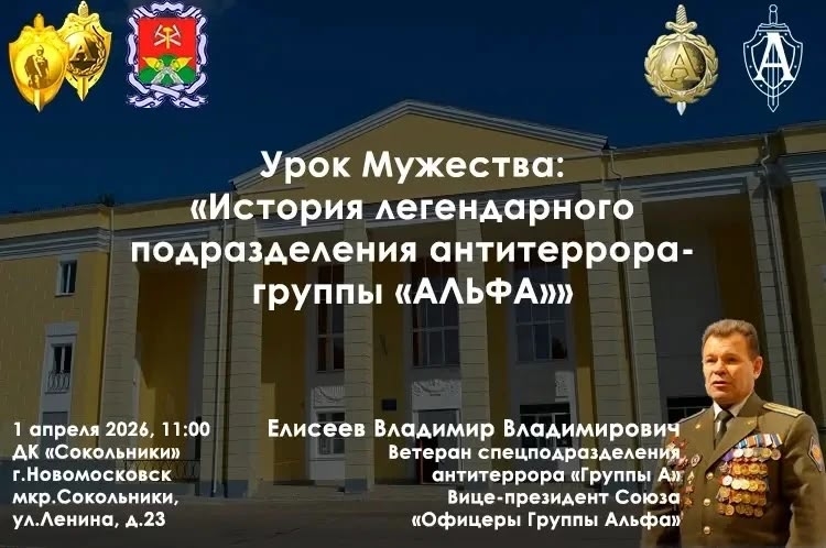 1 апреля 2026 года в ДК "Сокольники" города Новомосковска при поддержке Фонда Дмитрия Донского состоялся урок мужества, посвященный истории легендарного антитеррористического подразделения «Альфа». Пе ... Читать дальше » |